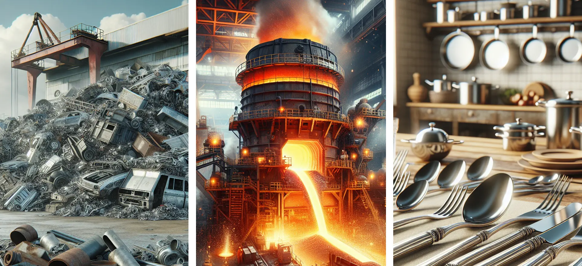 - the exact proportions of scrap metal items collected at a recycling center that were recycled into a dessert spoon after being melted down.